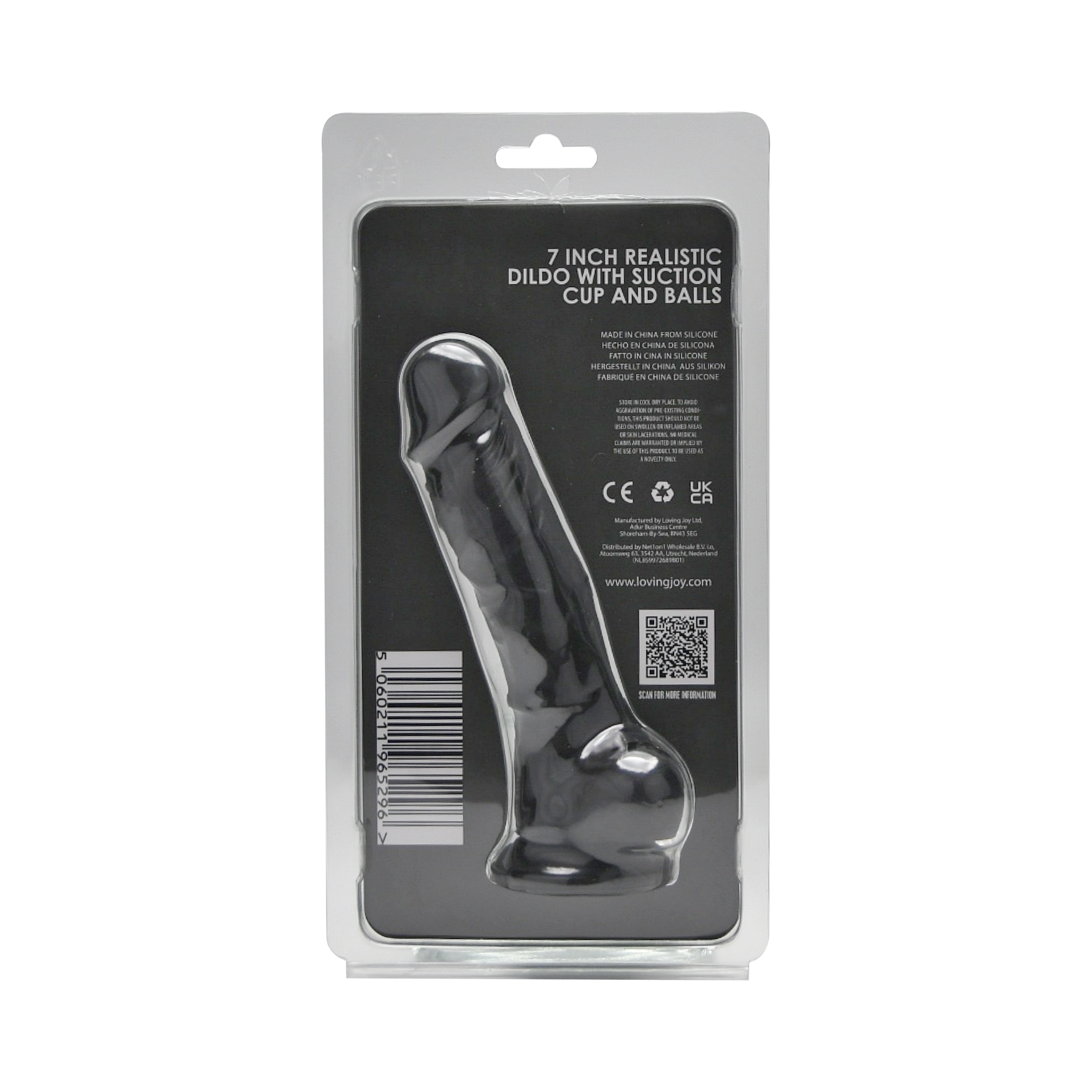 Loving Joy 7 Inch Realistic Silicone Dildo with Suction Cup and Balls Black